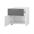 PICOLO 08 SZYNAKA Тумба прикроватная однодверная модульной системы Пиколо ШИНАКА с выдвижным ящиком. В зависимости от сборки может быть левосторонней (петли слева) или правосторонней (петли справа). Применяется система тихого закрытия двери и направляющие полного выдвижения.