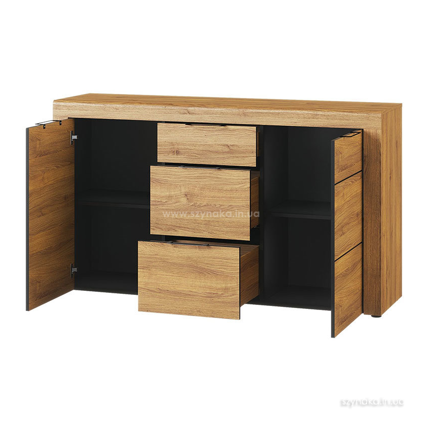KAMA 45 SZYNAKA Комод двухдверный модульной системы Кама ШИНАКА с тремя выдвижными ящиками. Внутри каждого отделения установлена одна деревянная полка. Комод оснащен системой тихого закрытия дверей и ящиков