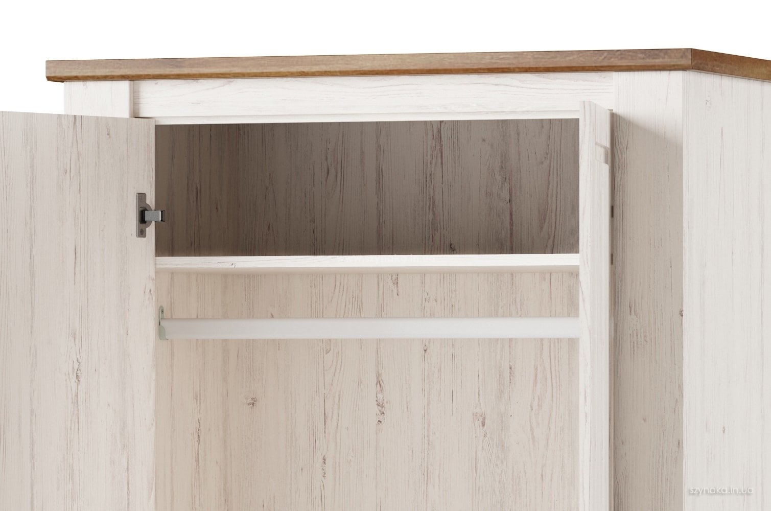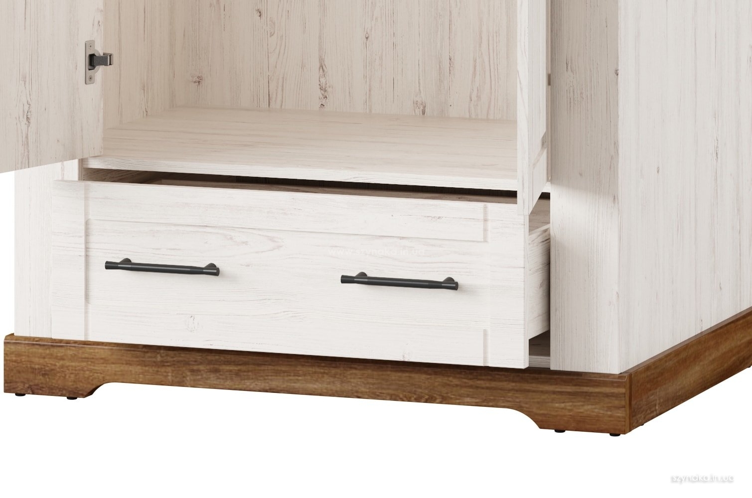 COUNTRY 70 SZYNAKA Шкаф двухдверный платяной модульной системы Кантри ШИНАКА с выдвижным ящиком. За двумя распашными дверцами расположена полка и штанга для вешалок. Шкаф оснащен системой тихого закрытия дверей и ящика.