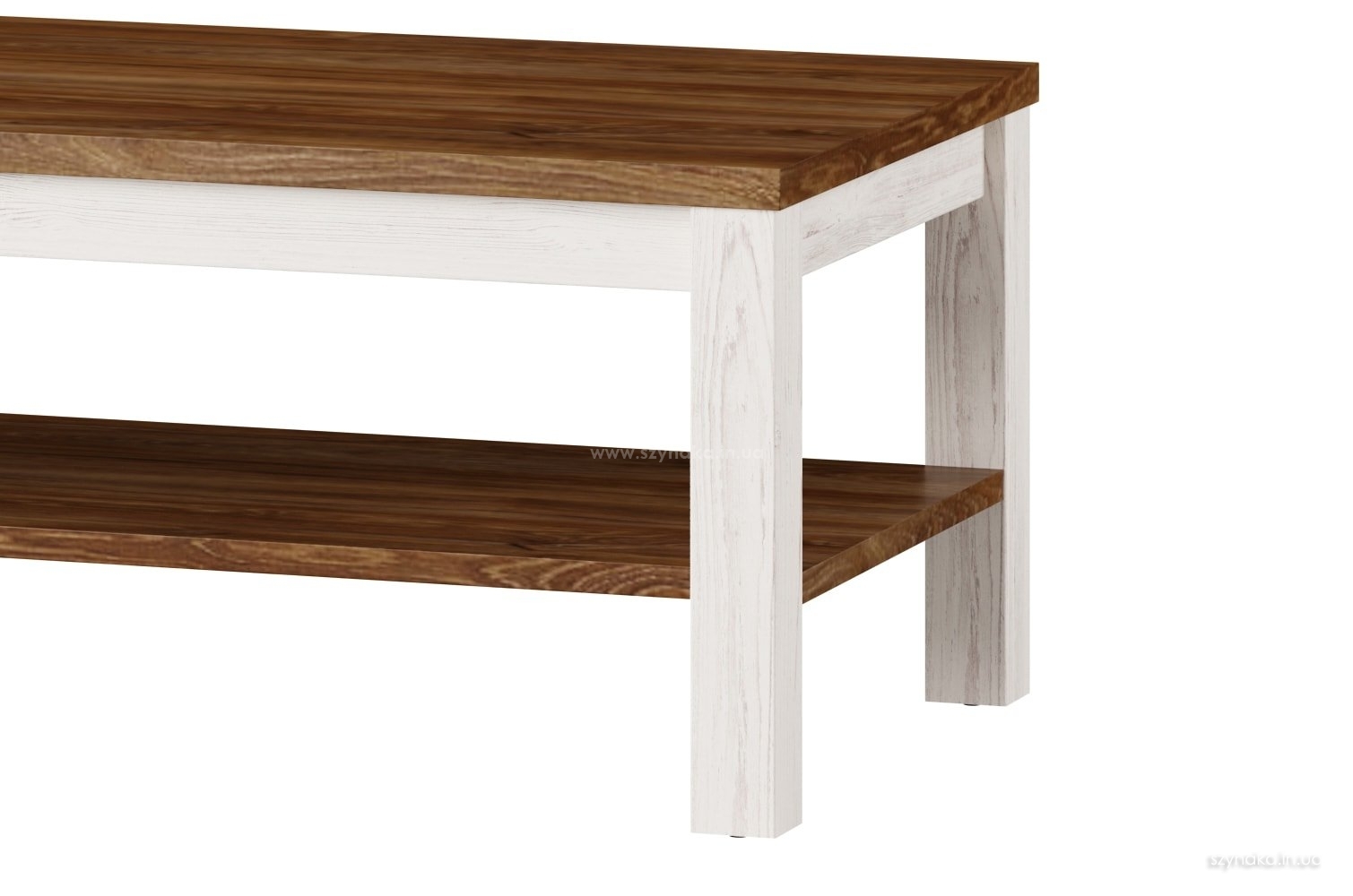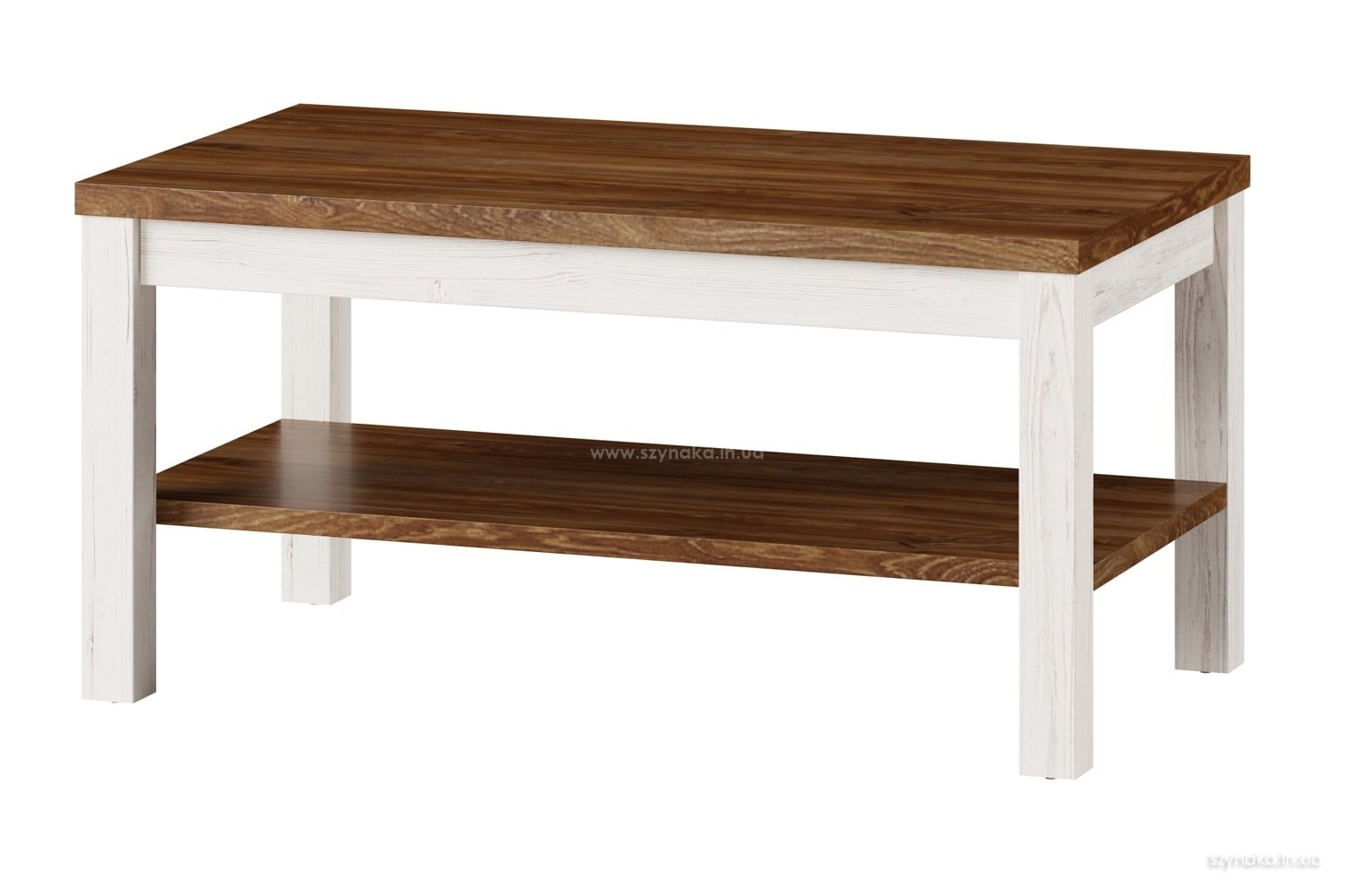 COUNTRY 41 SZYNAKA Стол журнальный модульной системы Кантри ШИНАКА с прямоугольной столешницей и полкой. Столешница, покрытая ламинатом, обладает повышенной механической и температурной устойчивостью.