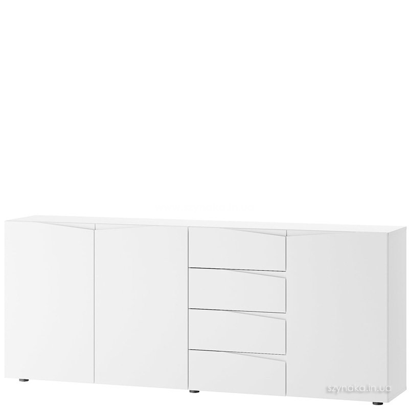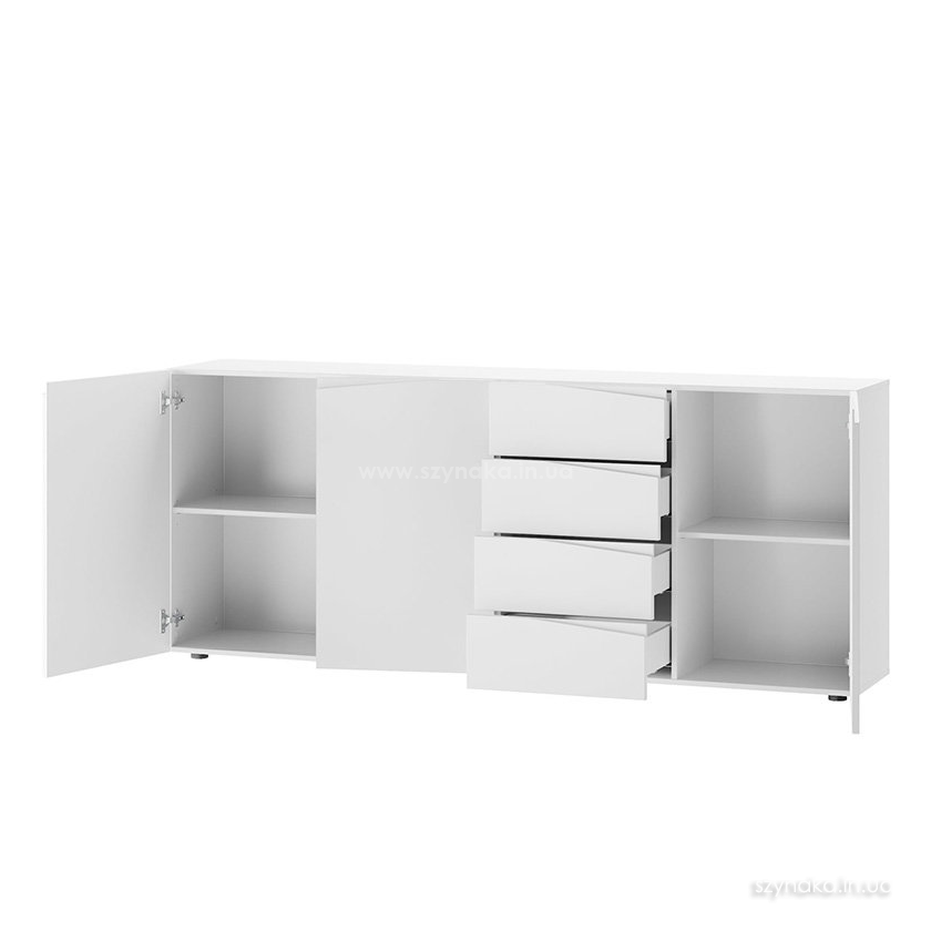 LUCCA 03 SZYNAKA Комод трехдверный модульной системы Лукка ШИНАКА с четырьмя выдвижными ящиками на шариковых направляющих. За каждой дверью по центру расположена полка. Для открывания используются фрезерованные ручки.