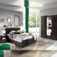 PORTI SZYNAKA Спальня модульной системы Порти ШИНАКА. Фасады украшены фрезерованной деревянной частью с окантовкой из черного закаленного стекла. Кровать комплектуется мягким изголовьем и основанием. Матраc в стоимость не входит и приобретается отдельно.