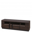 PORTI 25 SZYNAKA Тумба ТВ модульной системы Порти ШИНАКА с тремя выдвижными ящиками и тремя открытыми нишами. Фасад украшен фрезерованной деревянной частью с окантовкой из черного закаленного стекла.