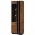 PORTI 10 SZYNAKA Витрина левая двухдверная модульной системы Порти ШИНАКА с двумя стеклянными полками за левой дверцей. В центральной части фасада расположена фрезерованная деревянная часть с окантовкой из черного закаленного стекла. Дополнительно витрина комплектуется подсветкой 3-L-BC-2-0100-01 , 3-L-BC-2-0400-02 или 2-L-BC-1-0000-01