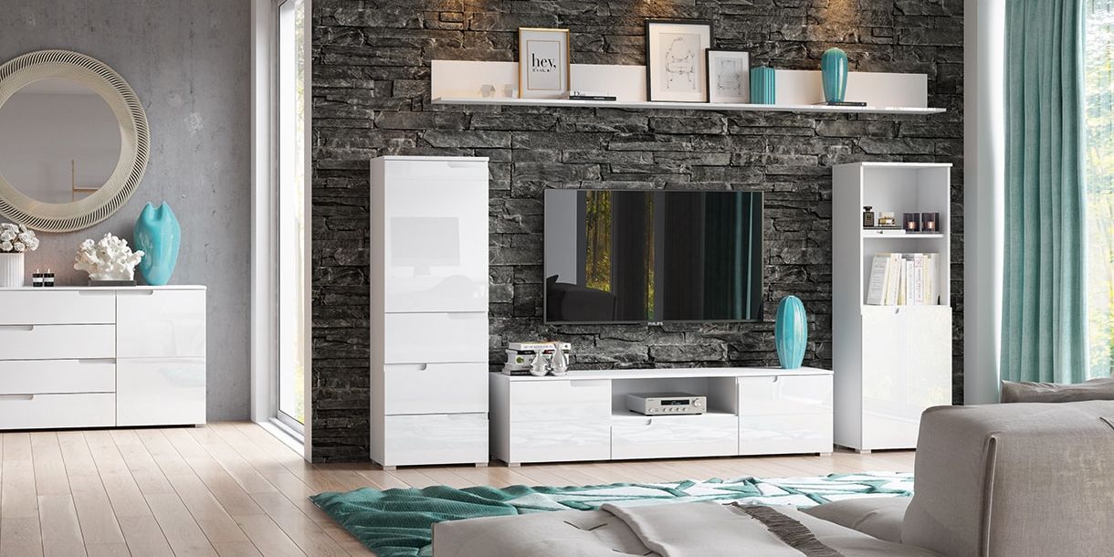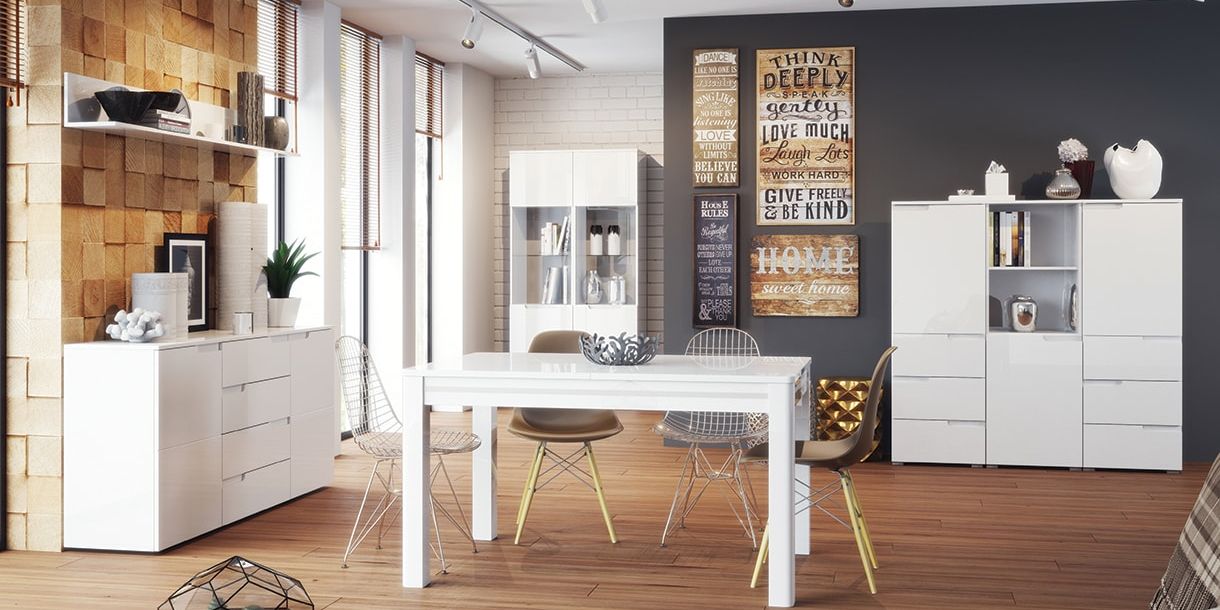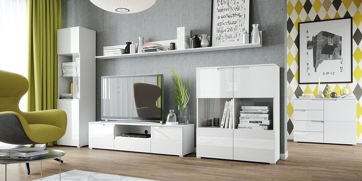 Гладкие фасады хорошо сочетаются с оригинальными ручками-выемками, подчеркивающие модернистскую форму модулей. Благодаря широкому ассортименту мебель Шинака Селене позволяет воплотить вашу идею идеального интерьера в любом помещении.
