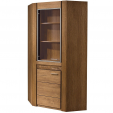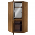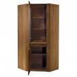 VELVET 16 SZYNAKA Витрина угловая двухдверная модульной системы Вельвет ШИНАКА с вращающимся баром за верхней дверцей. Поворотный механизм состоит из трех секций. Первая содержит полки для размещения бутылок, вторая с остекленной задней стенкой – полки с бортиками для стаканов и рюмок и рейлинг для бокалов, третья – зеркало. За нижней дверью расположена одна полка. Витрина декорирована внешней горизонтальной подсвеченной вставкой.