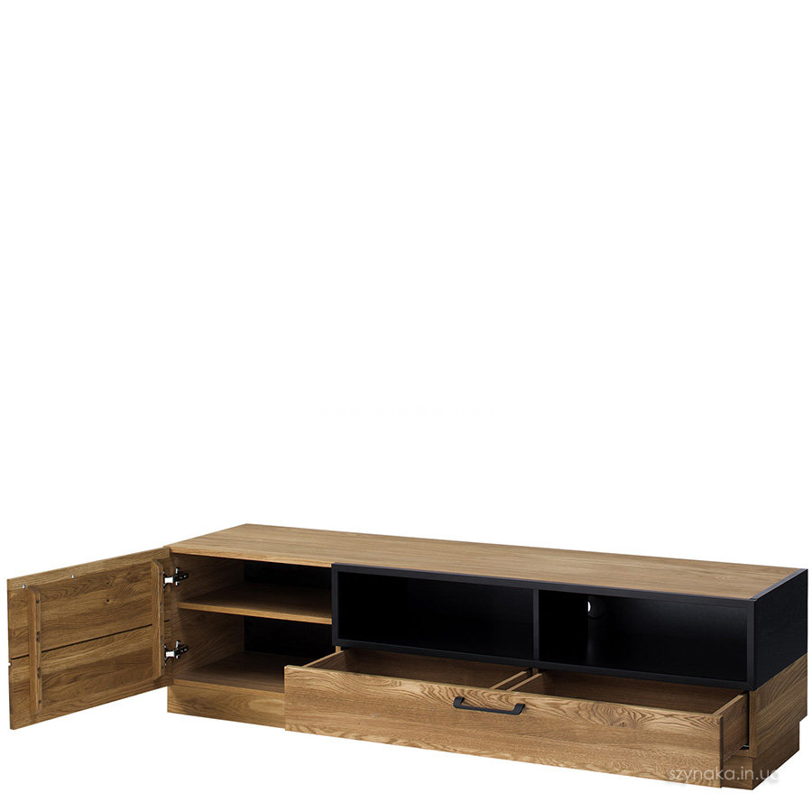 MOSAIC 25 SZYNAKA Тумба ТВ однодверная модульной системы Мозаик ШИНАКА с выдвижным ящиком и двумя открытыми нишами. Оснащена системой тихого закрытия двери и ящика. В задней стенке между нишами предусмотрено техническое отверстие для проводов.