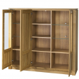 OSLO 48 SZYNAKA Буфет трехдверный модульной системы Осло ШИНАКА. Декорирован металлическими матовыми вставками. За боковыми дверями с прозрачным стеклом расположены три полки, в том числе две стеклянные. В среднем отделении – три деревянные полки. Дополнительно буфет комплектуется подсветкой 3-L-BN-4-0000-01. Применяется система тихого закрытия дверей.