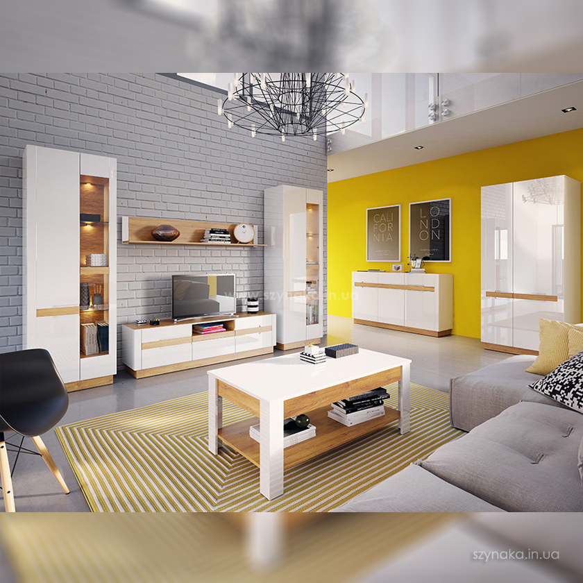 VISIO SZYNAKA Гостиная модульной системы Визио ШИНАКА. Ящики и двери открываются за ручки-выемки. Дополнительно витрины комплектуются подсветкой 3-L-BN-3-0000-01.