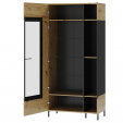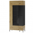 Высокая 2-дверная витрина в стиле лофт / индастриал, классической формы, характеризуется элегантным сочетанием цветов - дуб артизан + черный матовый. Кроме того, задняя стенка витрины также выполнена в матово-черном цвете, придающем мебели оригинальный характер. За дверью расположены 8 полок, 3 из них стеклянные. Визуальный эффект может быть дополнительно подчеркнут светодиодным освещением для стеклянных полок (опция). Витрина Lucas 12 может использоваться в гостиных, столовых, а также офисах.