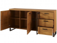 PRATTO 47 SZYNAKA Буфет трехдверный модульной системы Пратто ШИНАКА с тремя выдвижными ящиками. За дверью с прозрачным закаленным стеклом в черной алюминиевой раме расположена стеклянная полка. В остальных отделениях – по одной деревянной полке. Дополнительно буфет комплектуется подсветкой 3-L-BN-1-0000-01. Применяется система тихого закрытия дверей.