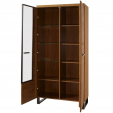PRATTO 12 SZYNAKA Витрина двухдверная модульной системы Пратто ШИНАКА. За левой дверью со вставкой из прозрачного закаленного стекла в черной алюминиевой раме расположены четыре полки, в том числе три стеклянные. За правой дверью установлены четыре деревянные полки. Дополнительно витрина комплектуется подсветкой 3-L-BN-3-0000-01. Применяется система тихого закрытия дверей.