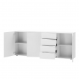 LUCCA 03 SZYNAKA Комод трехдверный модульной системы Лукка ШИНАКА с четырьмя выдвижными ящиками на шариковых направляющих. За каждой дверью по центру расположена полка. Для открывания используются фрезерованные ручки.