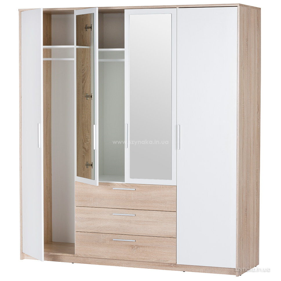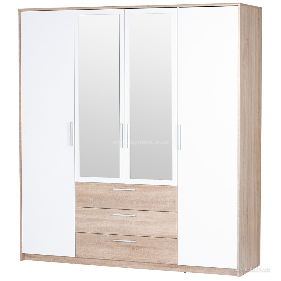 Шкаф Szynaka Milo 02 с зеркалом - очень вместительный предмет мебели с 4-я дверьми и 3-я выдвижными ящиками, который привлекает внимание современным дизайном и высоким качеством исполнения. Эта модель отлично дополнит интерьер спальни и решит проблему организации хранения ваших вещей.