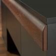 VIEVIEN 16 SZYNAKA Стол письменный модульной системы Вивьен ШИНАКА с дверкой, двумя открытыми нишами и четырьмя выдвижными ящиками, оснащенными системой Quadro для тихого закрытия. Задняя стенка стола черного цвета, что позволяет использовать стол посредине комнаты.