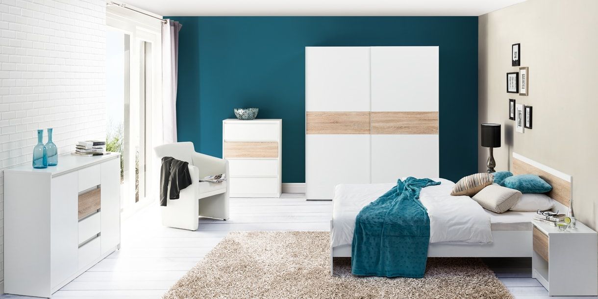 Польская мебель Szynaka WENECJA – белоснежная коллекция с контрастными фактурными вставками. Эффектный минималистический дизайн подчеркнут отсутствием традиционных ручек на фасадах. Мебель Шинака Венеция включает все необходимые элементы для обустройства комфортной спальни.