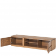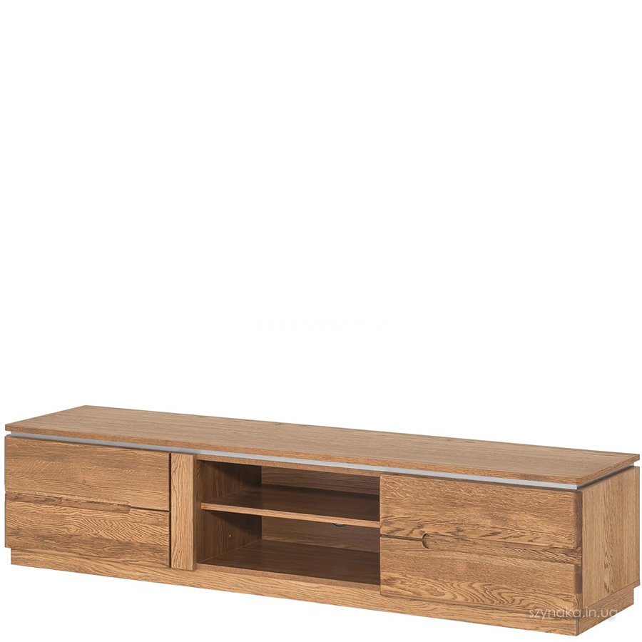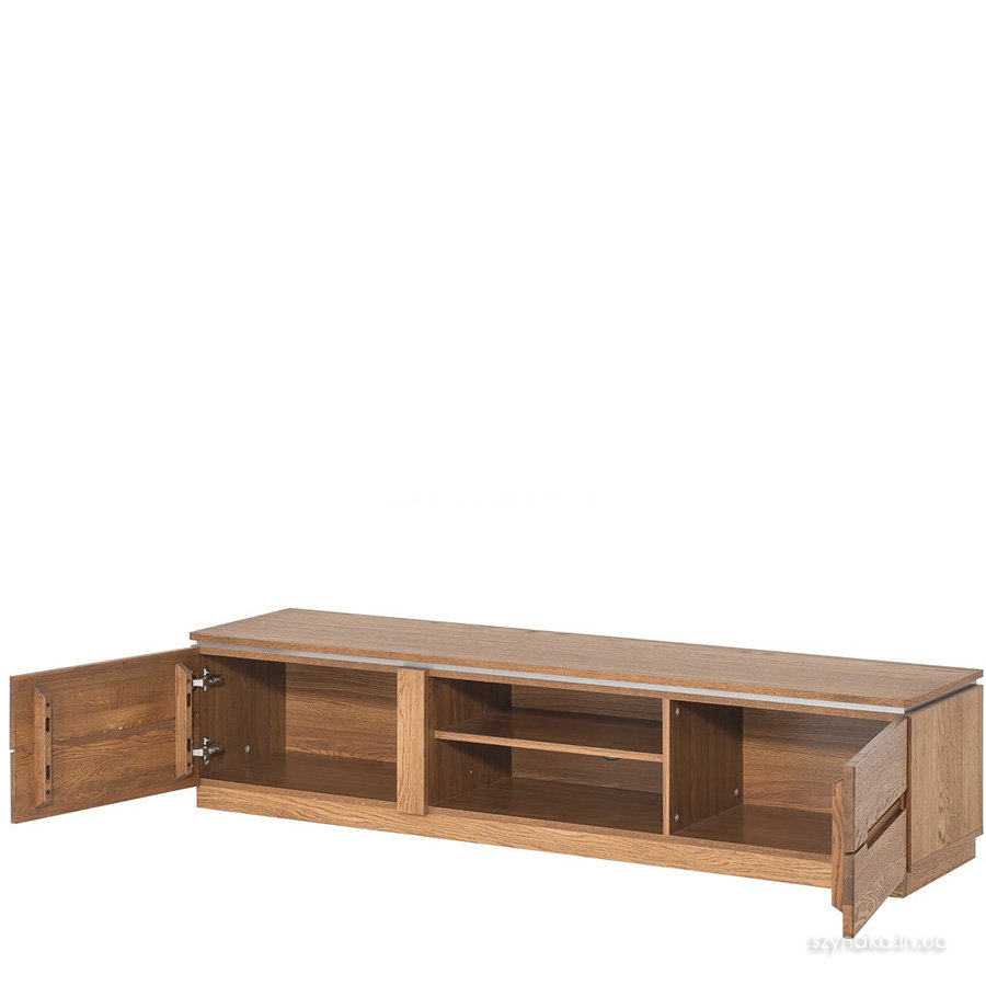 MONTENEGRO 25 SZYNAKA Тумба ТВ двухдверная модульной системы Монтенегро ШИНАКА с двумя открытыми нишами и отверстием для проводов в задней стенке. Декорирована горизонтальной металлической вставкой. За каждой дверцей расположены вместительные отделения. Тумба оснащена системой тихого закрытия дверей.