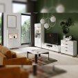 MEGAN 04 SZYNAKA Комод двухдверный модульной системы Меган ШИНАКА с четырьмя выдвижными ящиками. Внутри каждого отделения установлена одна деревянная полка.
