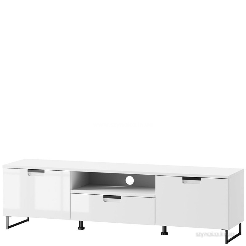 MEGAN 05 SZYNAKA Тумба ТВ двухдверная модульной системы Меган ШИНАКА с выдвижным ящиком и открытой нишей с отверстием для проводов в задней стенке. За каждой дверцей расположены вместительные отделени
